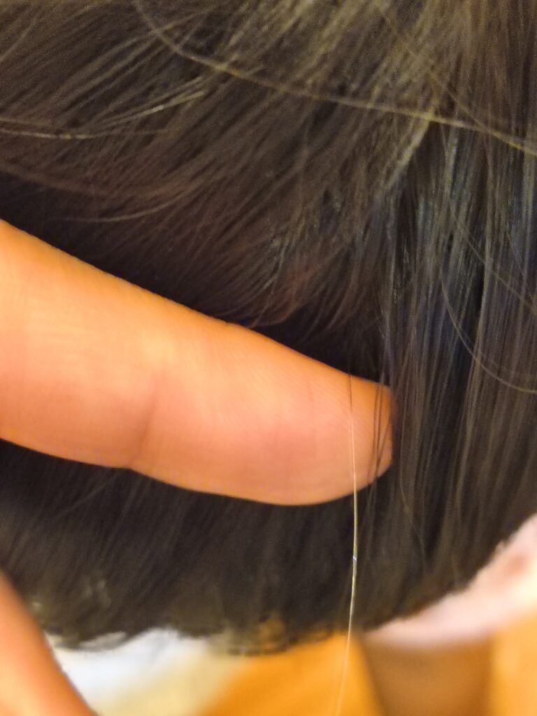 若白髪はアレルギー確定3歳頃に鼻喉ラインに1本の白髪有。